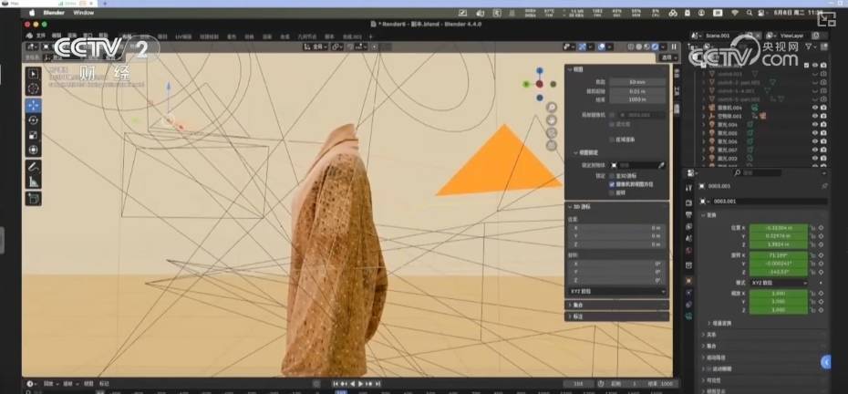 研究团队实现了对这件马王堆丝织品极致复杂织造印染工艺的毫米级精度还原,创新结合仿制实物与动态仿真技术,首次动态呈现了西汉时期丝织服饰的穿着效果与织物垂坠质感。
